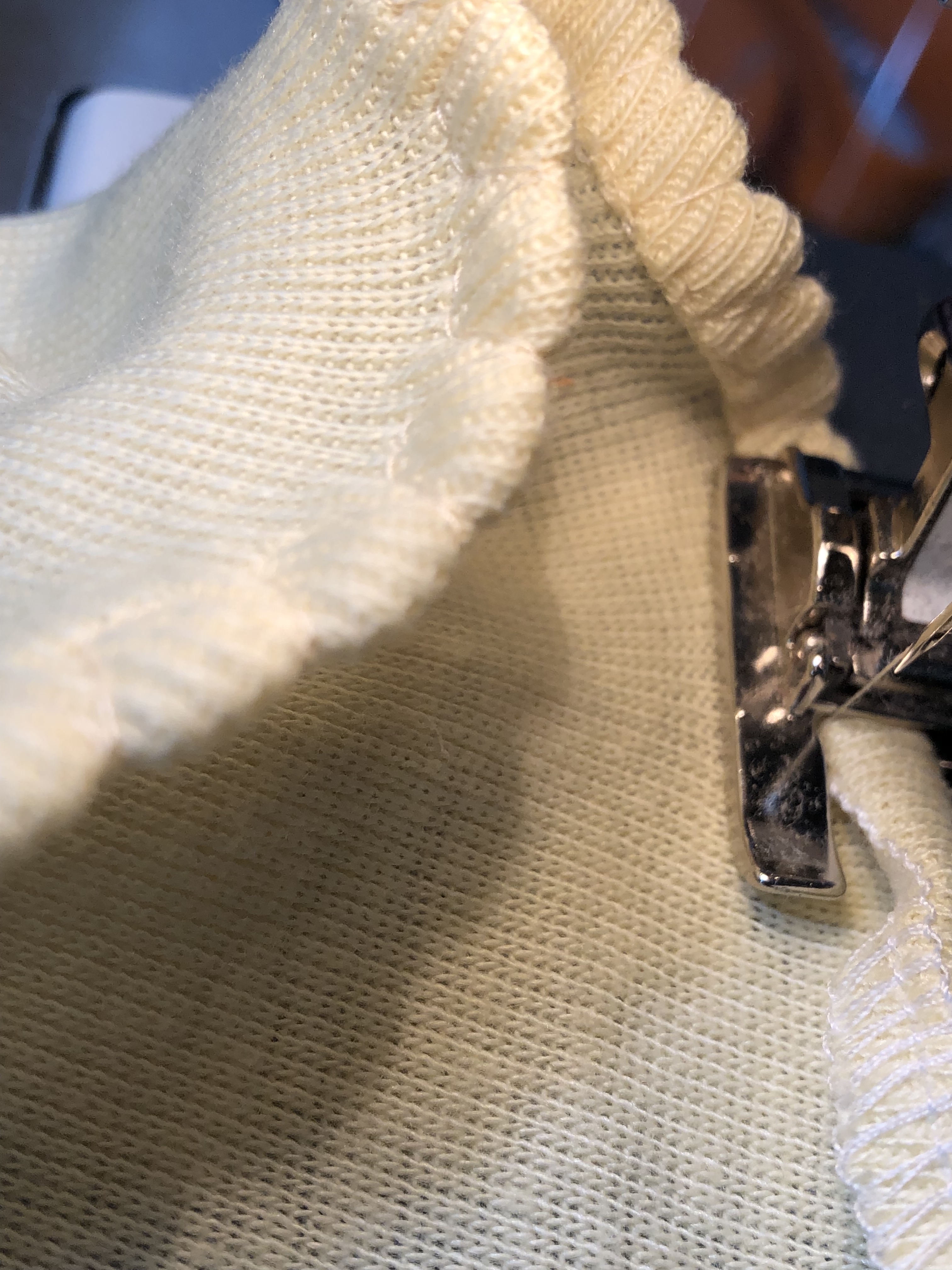 I remember the first time directly sewing elastic to a garment. My mother was on the phone in the kitchen watching me try and try again on the kitchen table. It takes practice. She asked me to wait till she was done with her phone call then patiently showed me how to hold both ends, and sew carefully.