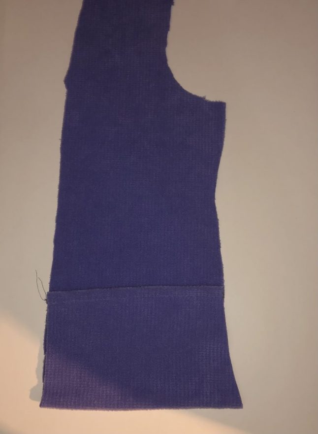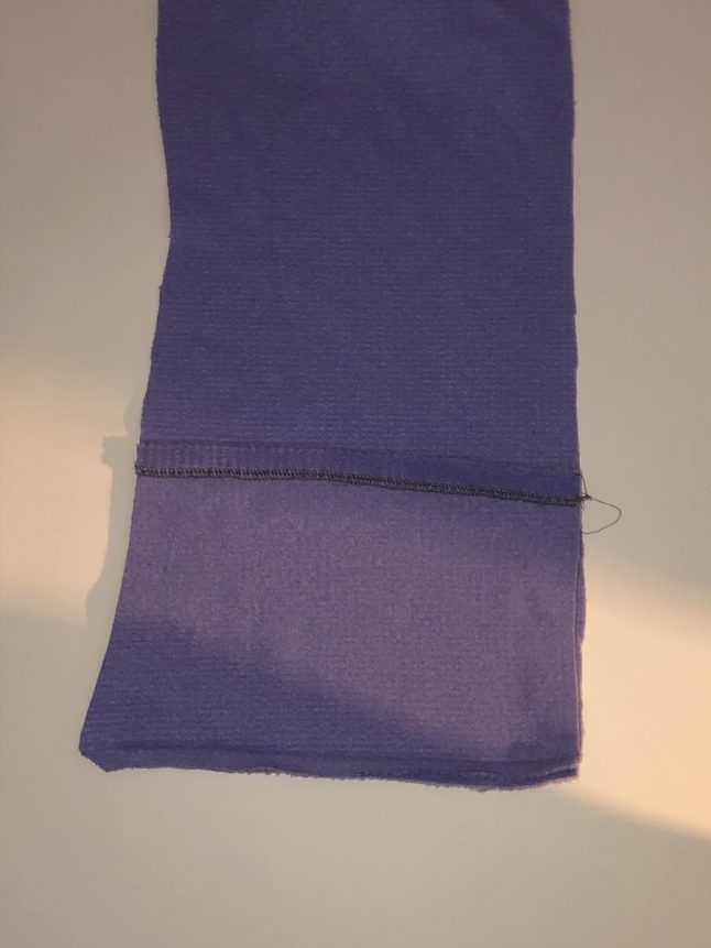 Hem the back. I used a wider zig zag 2 wide 4 long to account for the horizontal stretch. Add and hem your sleeves if you haven’t already, and you are done!
