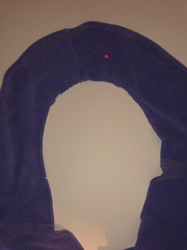 Note my sharpie curve of the point of the shawl collar. I did not cut this here, but will stitch this later, and trim it off.
