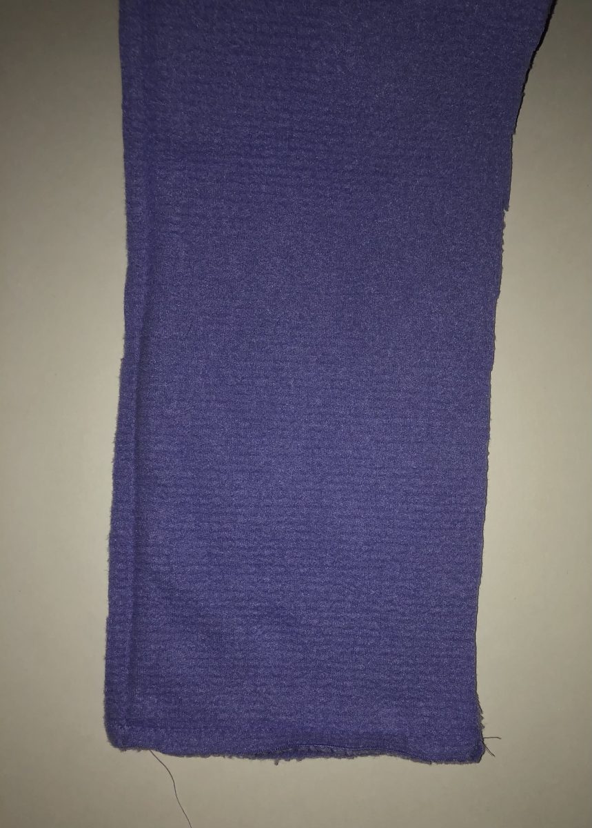 First things first, pockets. One simply needs a pocket in everything, and this Leslie Cardigan is no exception. I finished the top of my pocket strip, then placed my front right side down on my table, then the pocket also right side down on top of that and stitched across the bottom with a slight zig zag. 1 wide 3 long.