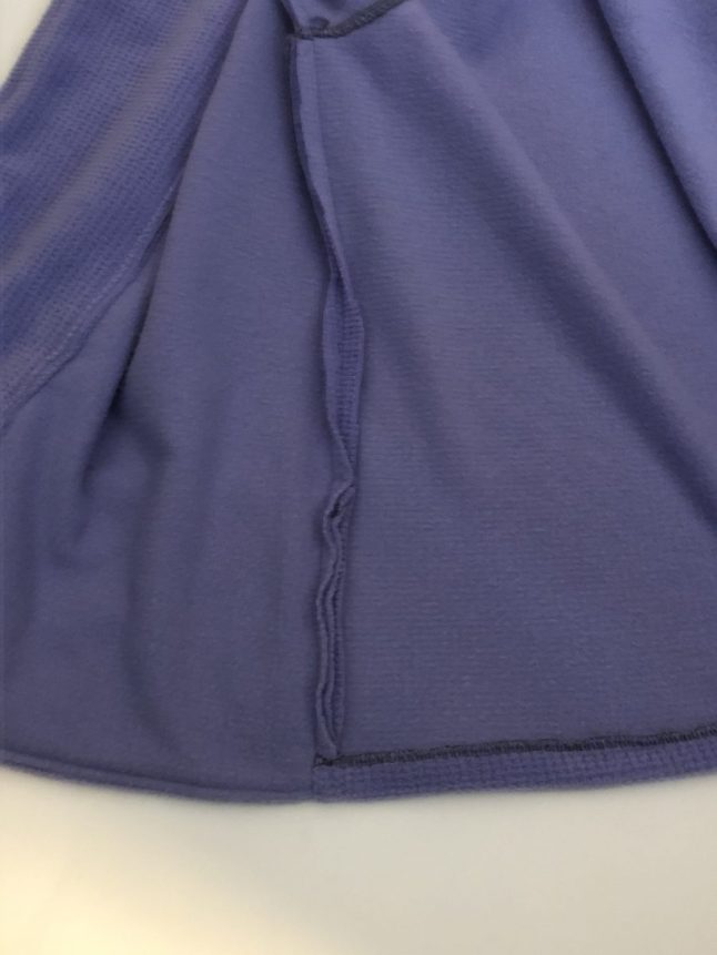 Clip your threads, so that they don’t show up on a super close up. Then go ahead and serge the hem edges of your back pieces and sleeves. If you flat sew your sleeves, now is the time, otherwise you will be sewing them later, in the round.