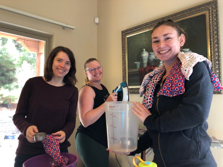 The Friday after Christmas, we gathered at my daughters house.  She had received a serger and was anxious to use it. Coffee and tea and cousins were involved and everyone brought rice.