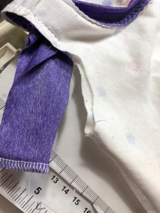 After sewing shoulder seams, top stitch them with the seam allowance towards the back. It is my secret message to myself and parents, so we know which is the front and back of the garment. It is often hard to tell and tags on a baby are not a place I want to go.